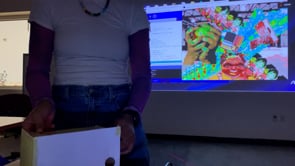 Visuals of the breadboard -the change in rate adjusts the hue of the image and rotates the center image, the change in delay adjusts the saturation of the image, the play/pause button changes the duplication of the center image